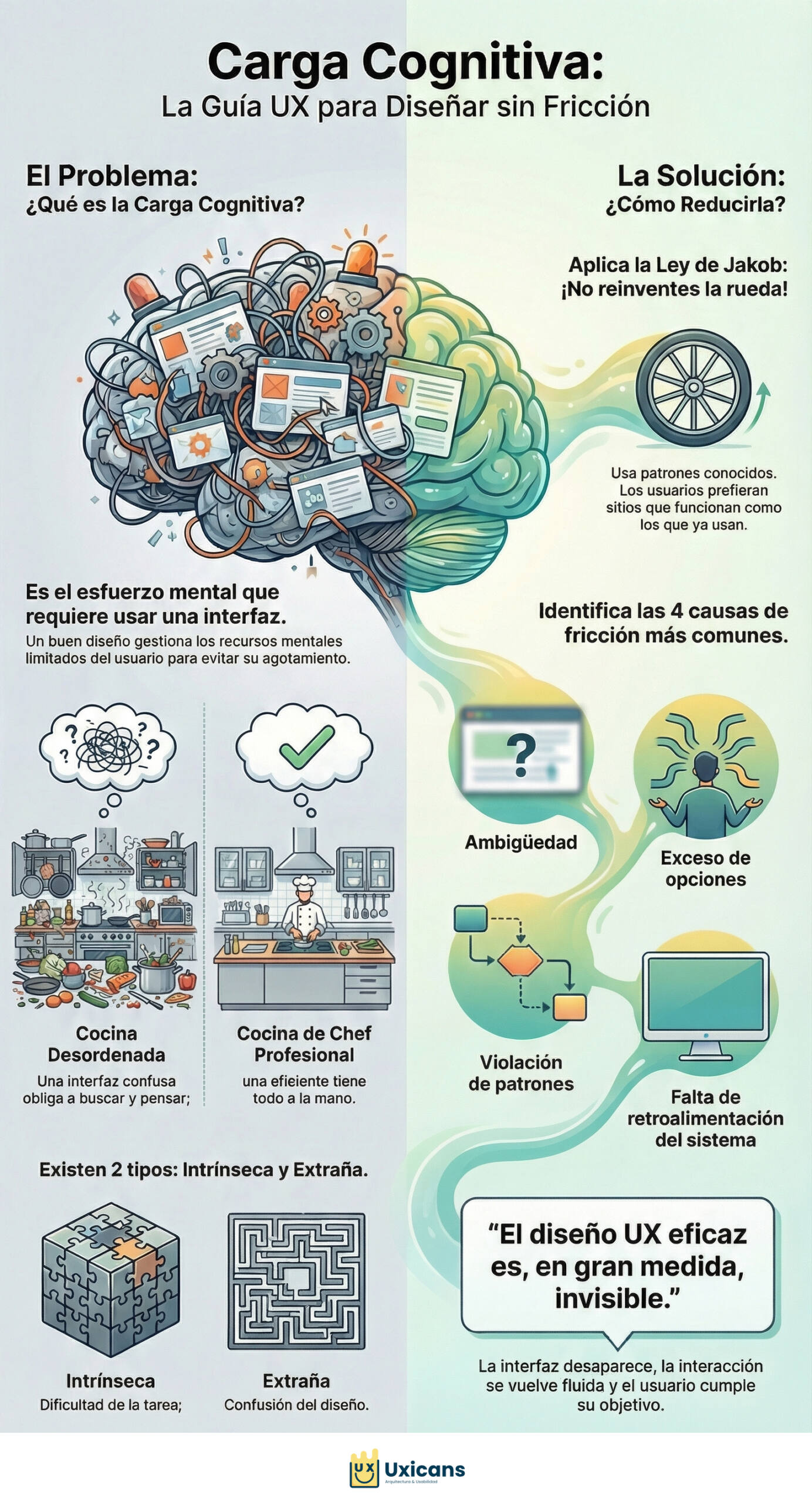El verdadero desafío de la usabilidad no es crear interfaces estéticamente agradables, sino reducir la carga cognitiva que impide a los usuarios avanzar con fluidez.