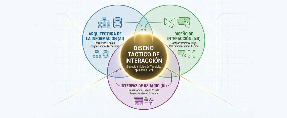 La hiper-especialización nos ha dejado con títulos ambiguos. El “UX” se ha vuelto un término paraguas que a menudo flota en la estrategia, y el “UI” ha sido injustamente reducido a la mera elección estética. En la trinchera real —lejos de los dogmas y más cerca del código y el lienzo— lo que el profesional ejerce es el Diseño Táctico de Interacción.