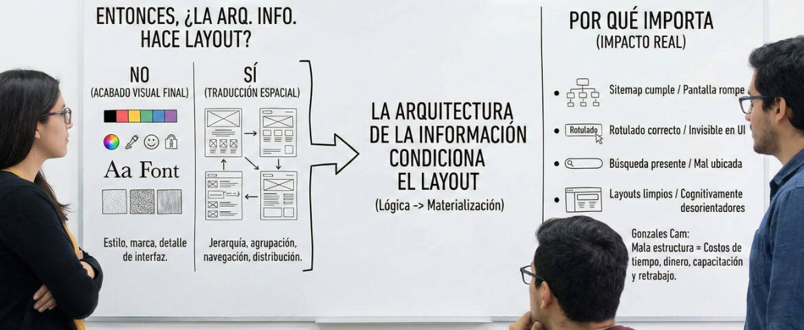 Por eso, más que decir que son universos separados, conviene decir algo más útil para la práctica profesional: la Arquitectura de la Información no termina antes del layout; se manifiesta en él.